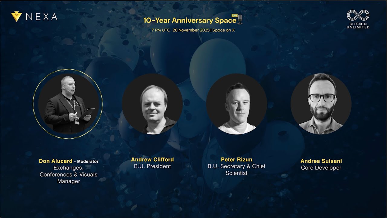 Founded on 28 November 2015, Bitcoin Unlimited (BU) reached its tenth anniversary in 2025, marking a decade defined by technical inquiry, governance experimentation, and sustained engagement with Bitcoin’s original design goals. To commemorate this milestone, BU hosted a public anniversary Space on X, bringing together developers, contributors, long-time community members, and newer participants to reflect on the organization’s trajectory—from early scaling debates to the launch of Nexa as a purpose-built next-generation blockchain.