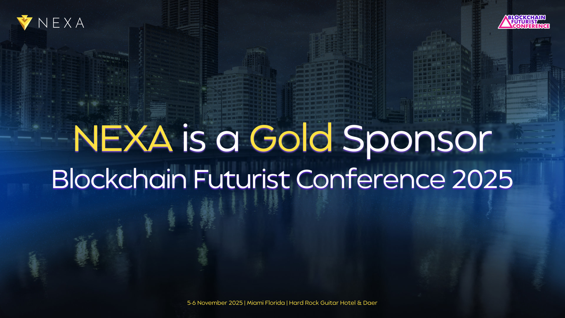 Nexa concluded a successful presence at the Blockchain Futurist Conference Florida 2025, where the project participated as a Gold Sponsor. Held on 5–6 November 2025 at the Hard Rock Guitar Hotel & Daer in Miami, the event once again proved to be one of the most influential Web3 gatherings in the United States, bringing together blockchain researchers, infrastructure builders, exchanges, and industry leaders.