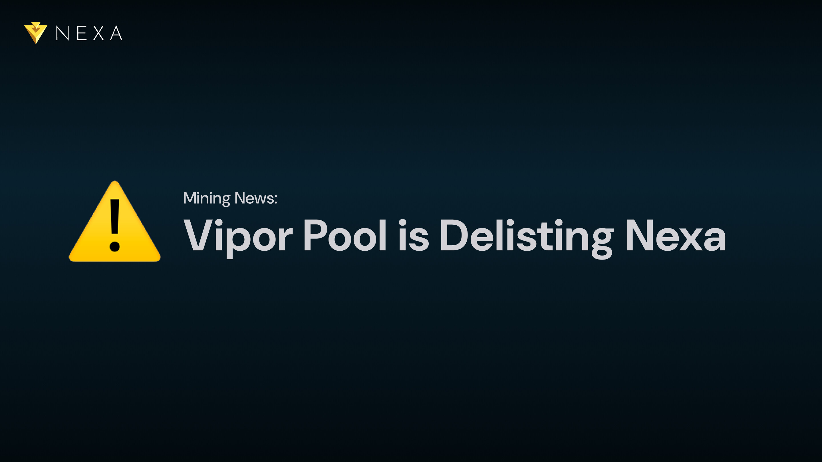 We regret to inform you that the Vipor.net mining pool has announced that it is delisting Nexa from its maintained pool services. The announcement was made on their Discord server on 6 December 2025, and we recommend that all affected users transition to another mining pool as soon as possible.