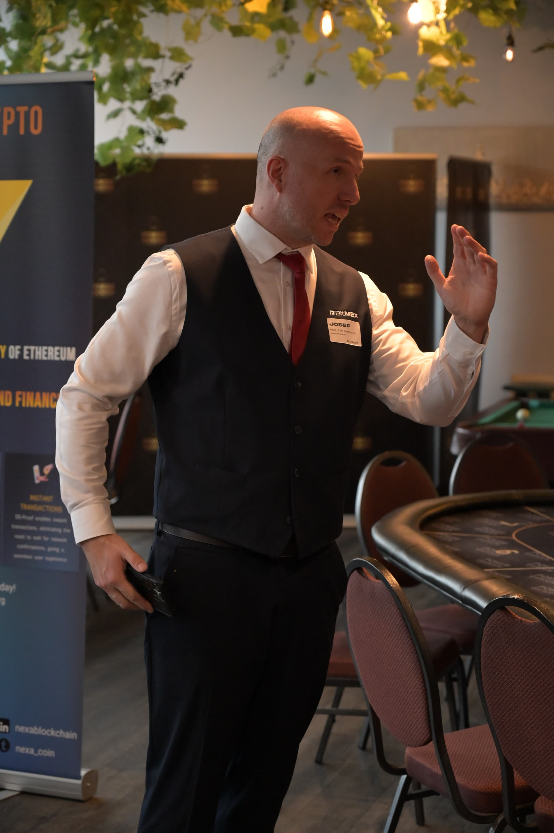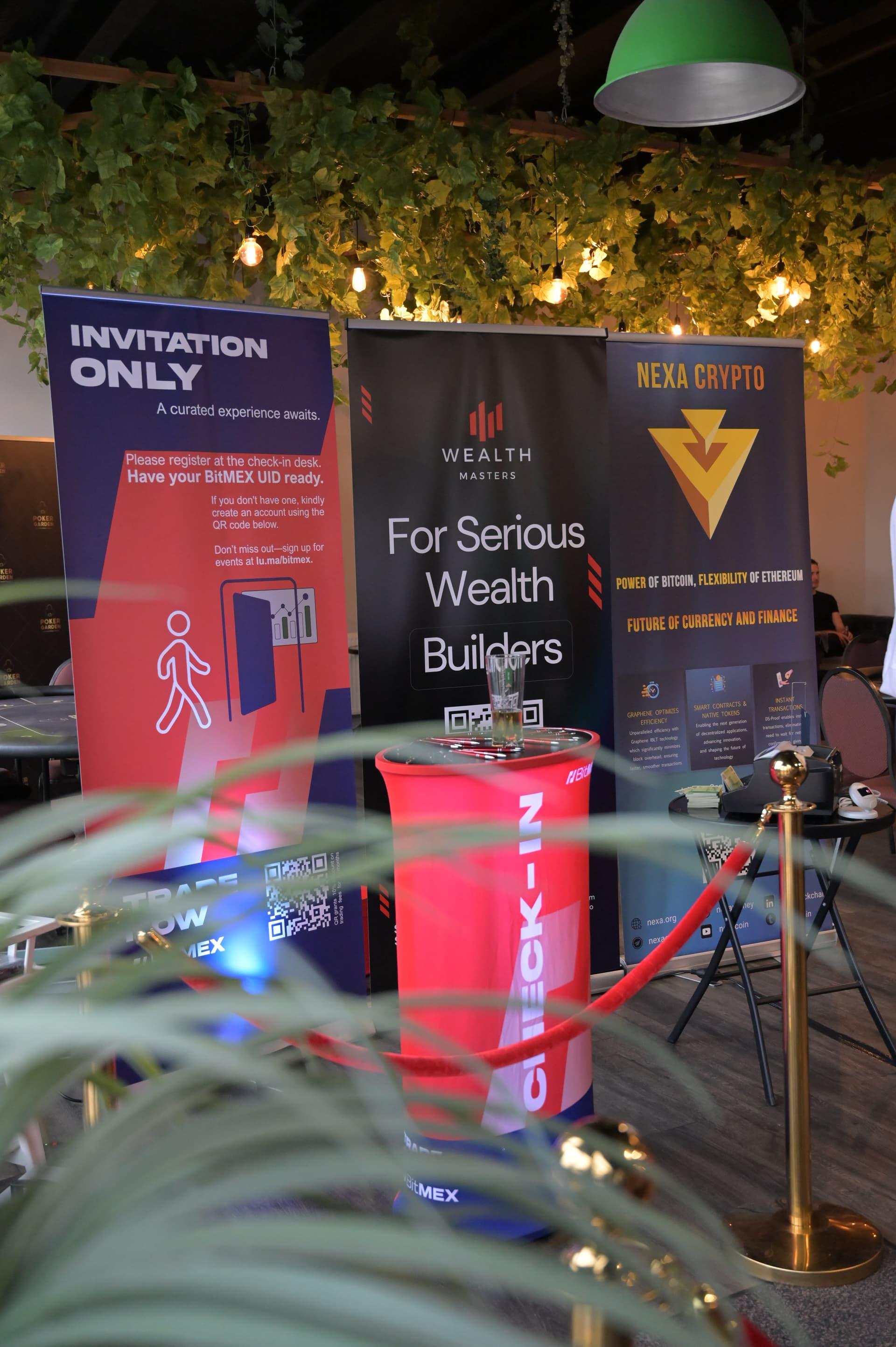 Attendees included BitMEX VIPs, Wealth Masters Club members, local influencers, and members of the Nexa community. Representing Nexa on the ground was team member Endo, while Josef Weirauch from BitMEX led the organization of the event, near Gabriele from Wealth Masters.